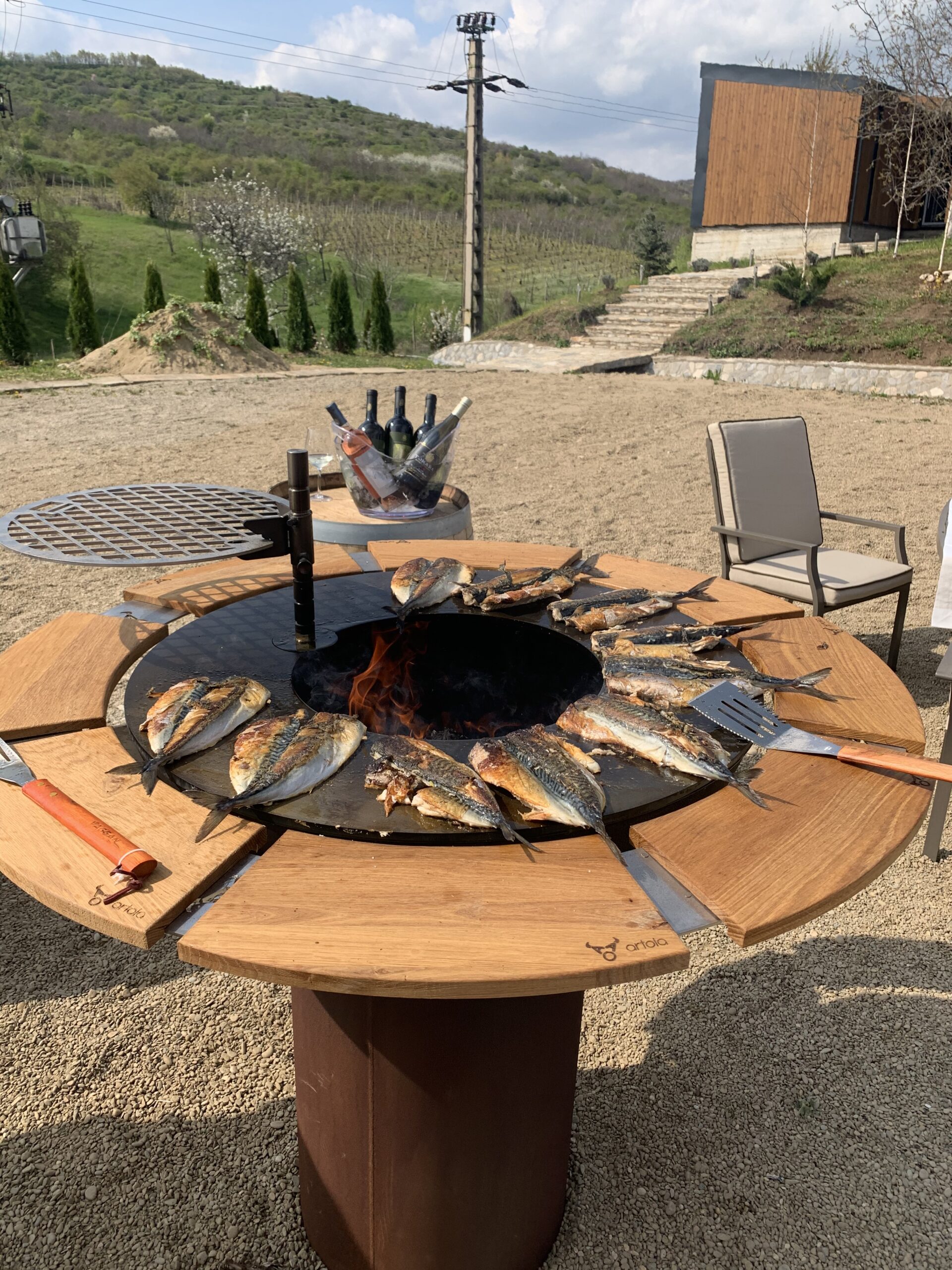 Podgoria întinsă pe 4 hectare, verdele crud al primăverii și oamenii ne-au făcut să ne simțim excelent, iar în centrul atenției a fost grătarul de grădină de la Artola. Fiind ziua, de Florii, am profitat și am pregătit un pește savuros, care a fost acompaniat de unul dintre vinurile vizionare ale Domeniului Aristiței.
